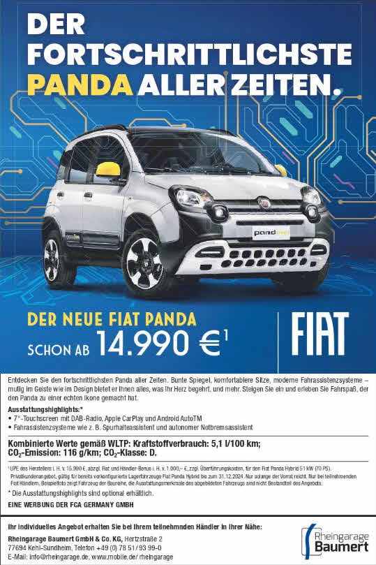 Fiat Händler bewerben den „fortschrittlichsten Panda aller Zeiten“, der mit € 1.000,- Aktionsbonus versehen ist.