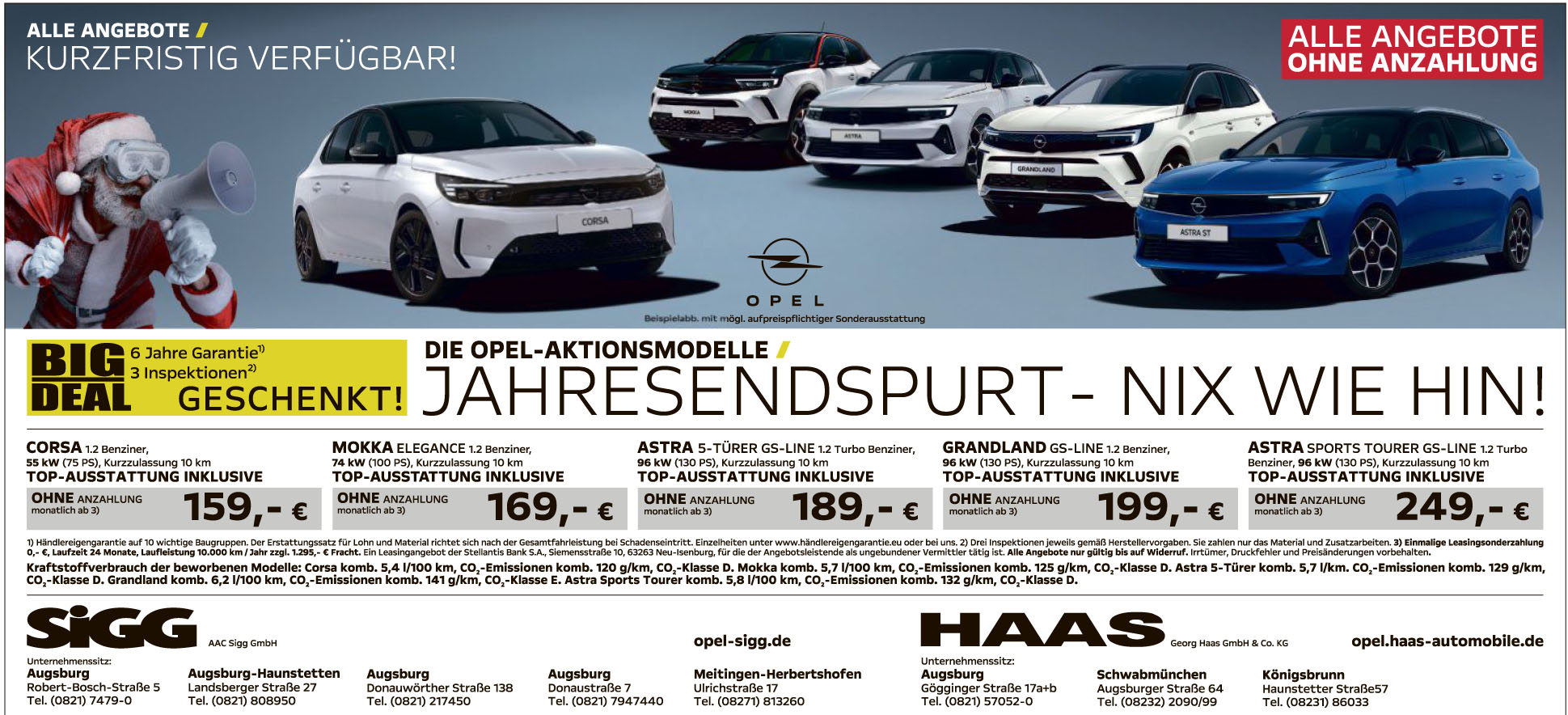 | Opel Händler bewerben weiterhin Leasingangebote ohne Sonderzahlung und zwei Jahren Laufzeit. Der durchschnittliche visuelle Restwert beträgt 85 % der UPE. |