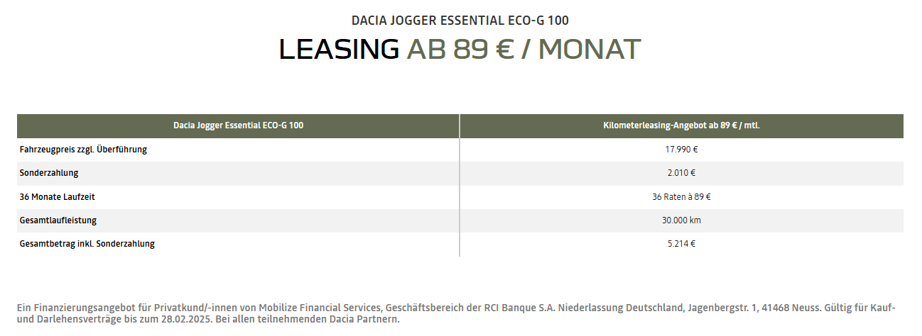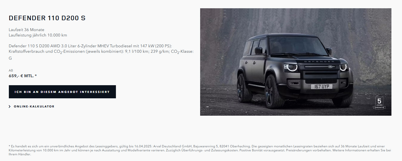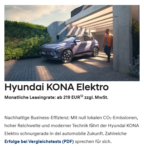 Sonderleasing für Gewerbetreibende, inkl. Garantieverlängerung, Wartung und Verschlei0 |