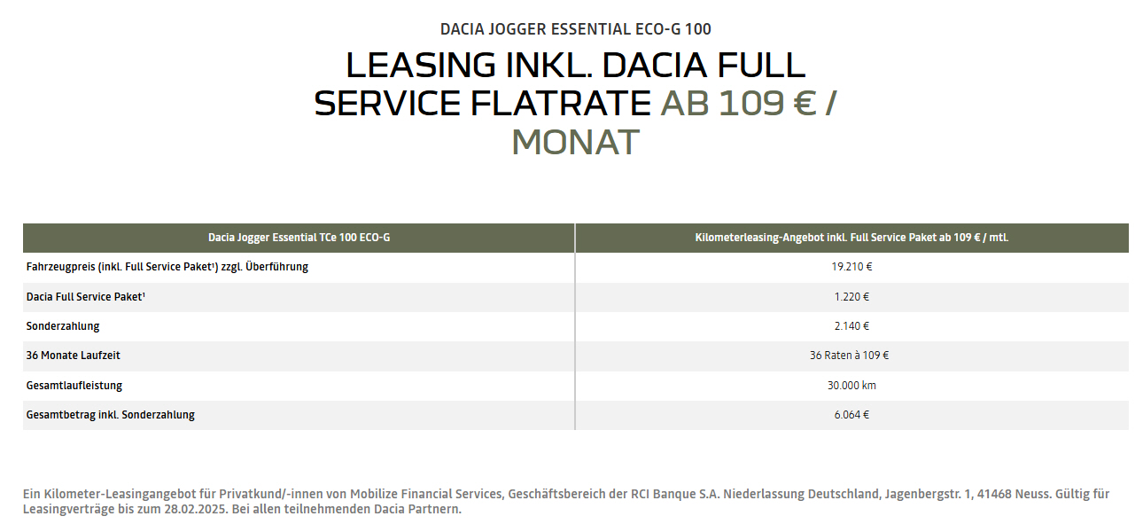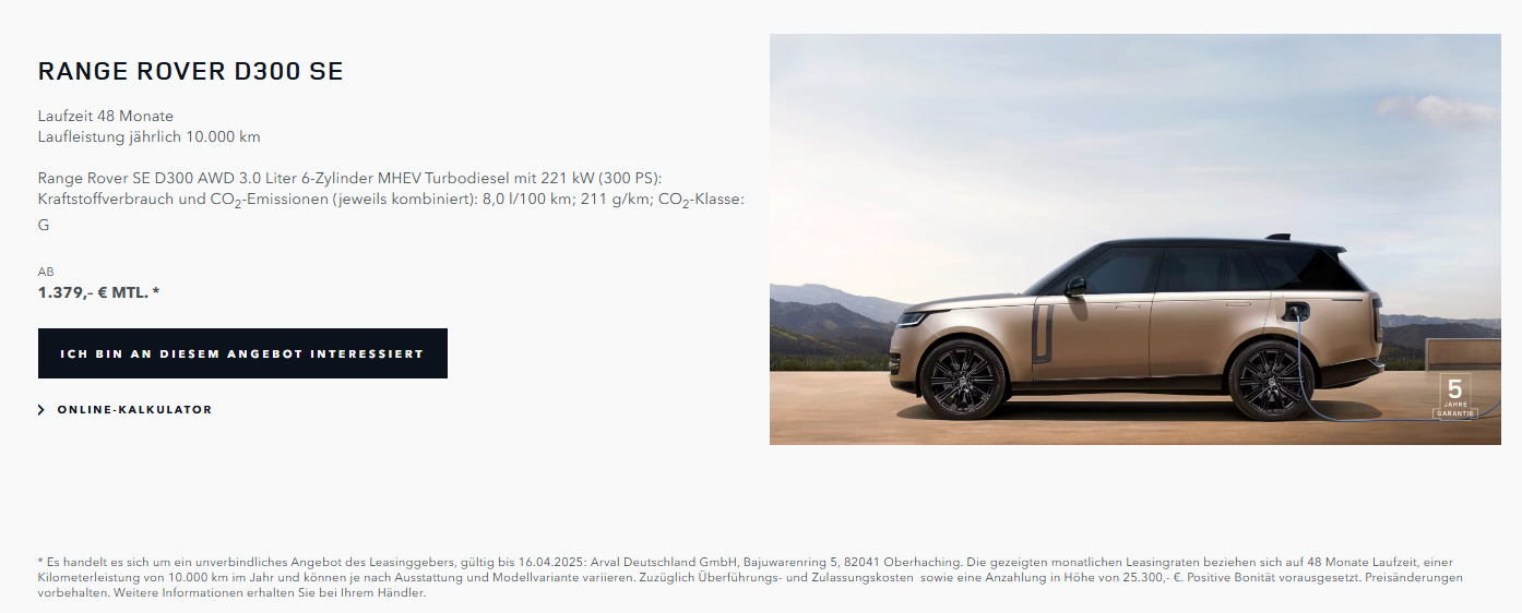Sonderleasing, inkl. Garantieverlängerung, Wartung und Verschlei0 |