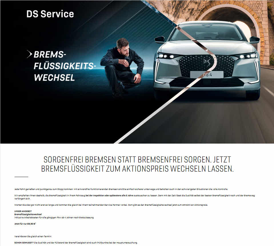 20 % Nachlass auf ausgewählte Services für Fz ab 5 Jahre |