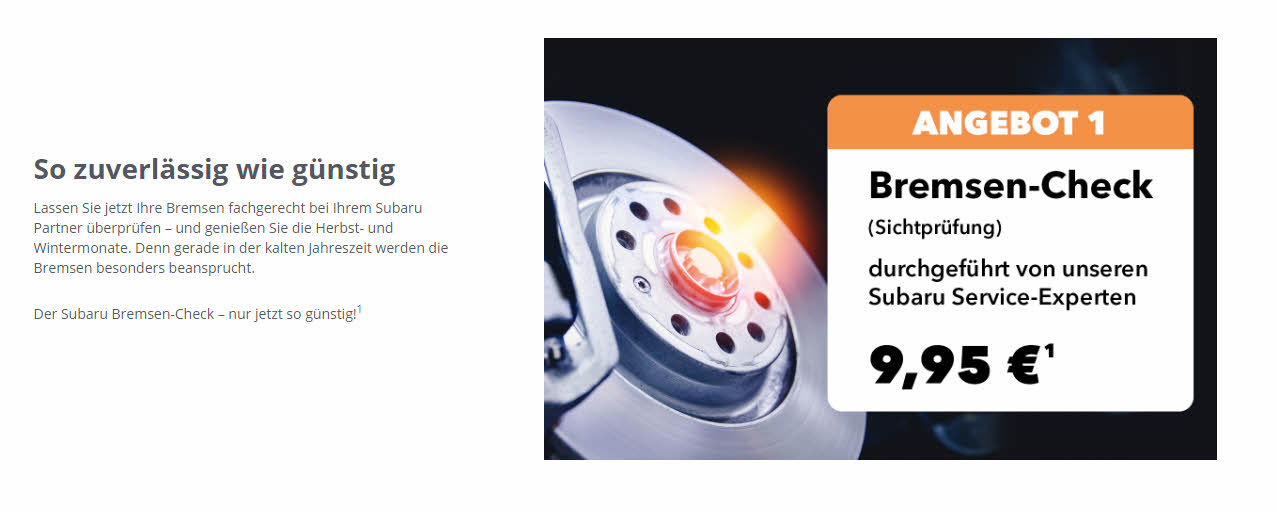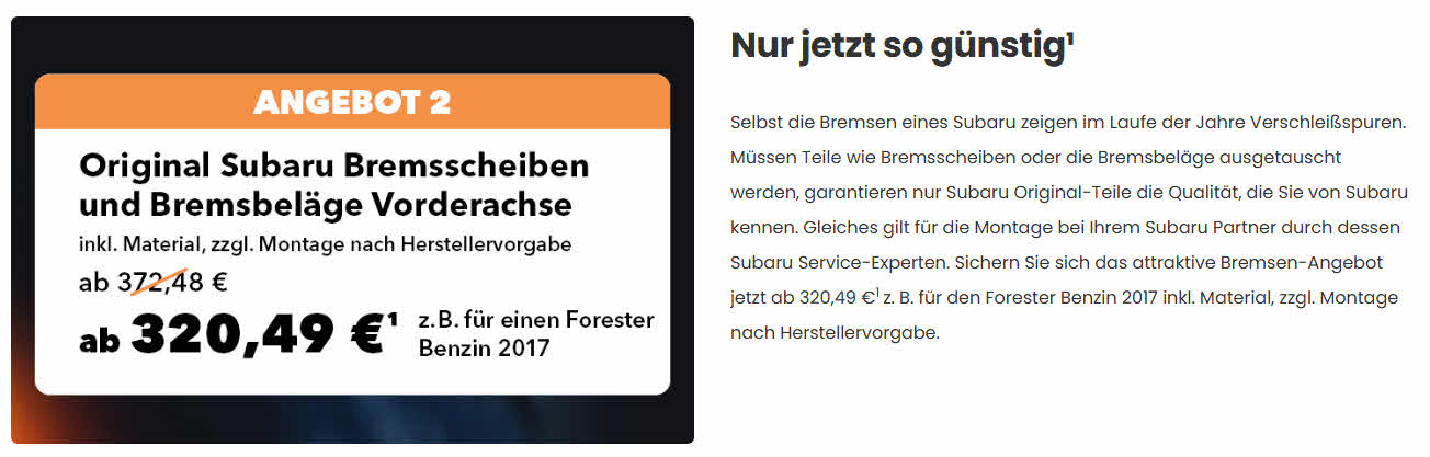 Wechsel Bremsscheiben und Bremsbeläge vorne, für Forester, statt € 372,48 |