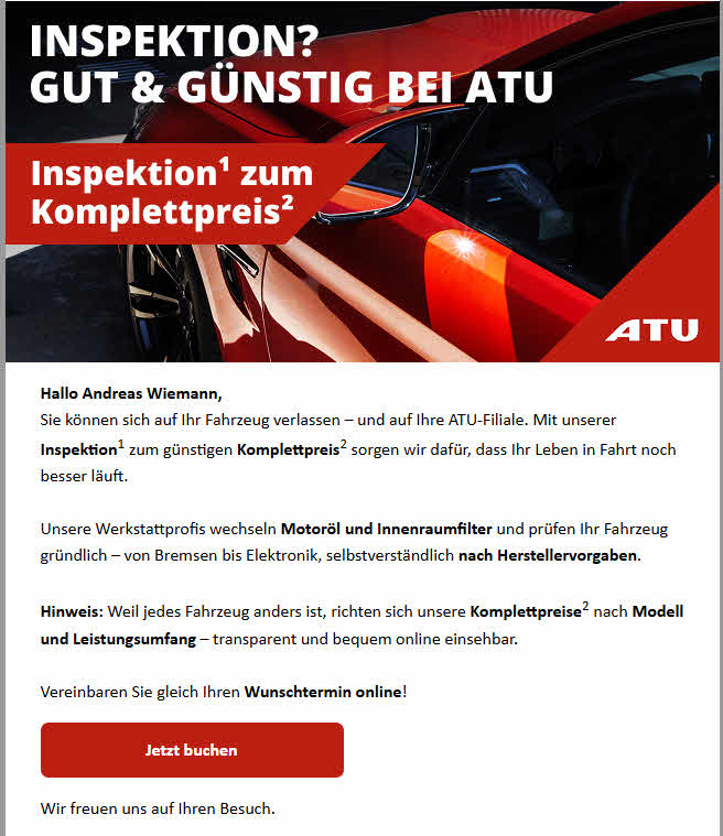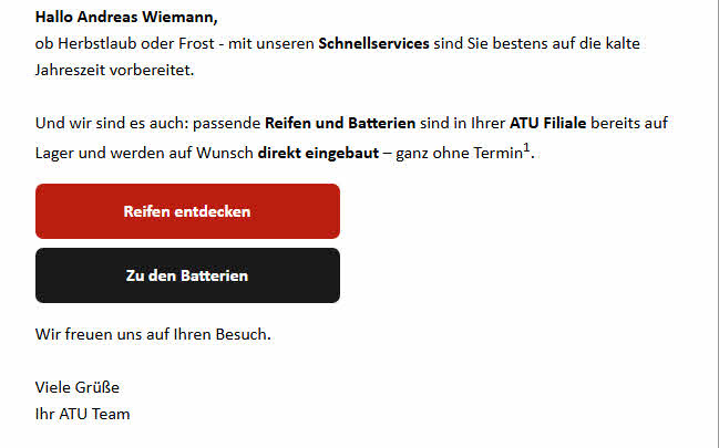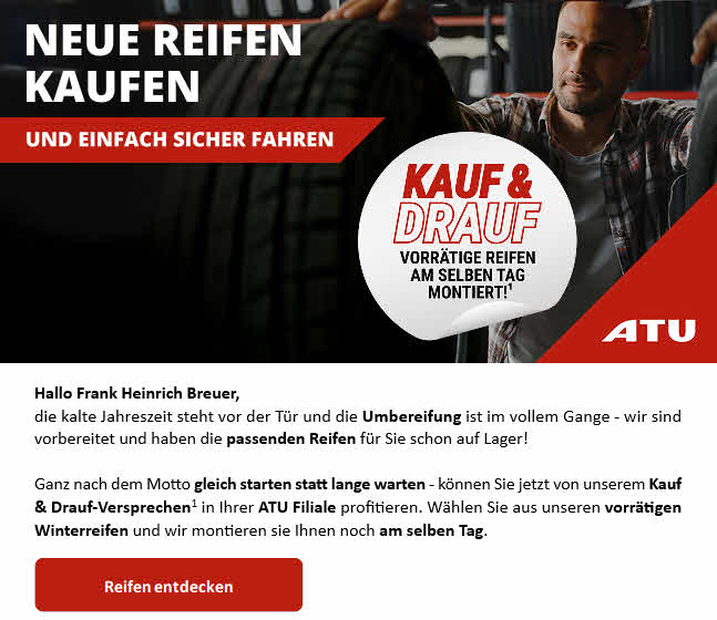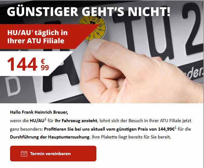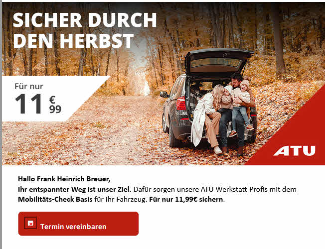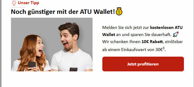 € 10,- Rabatt bei Anmeldung an der ATU-Wallet |