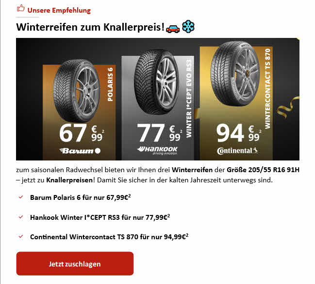 Bei Kauf von Winterreifen die Montage am selben Tag |