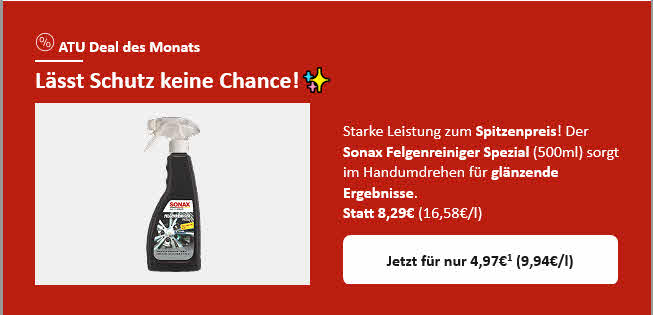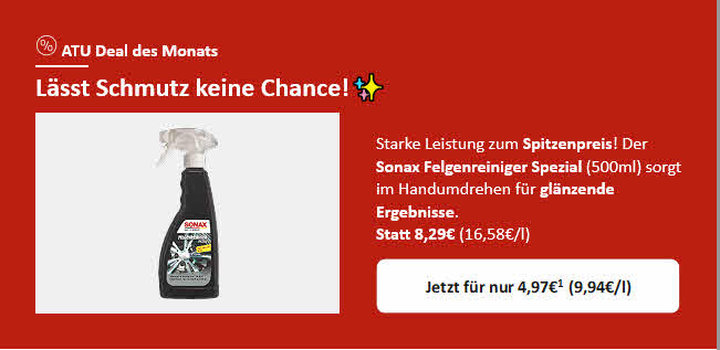Sonax Felgenreiniger Spezial, statt € 8,29 |