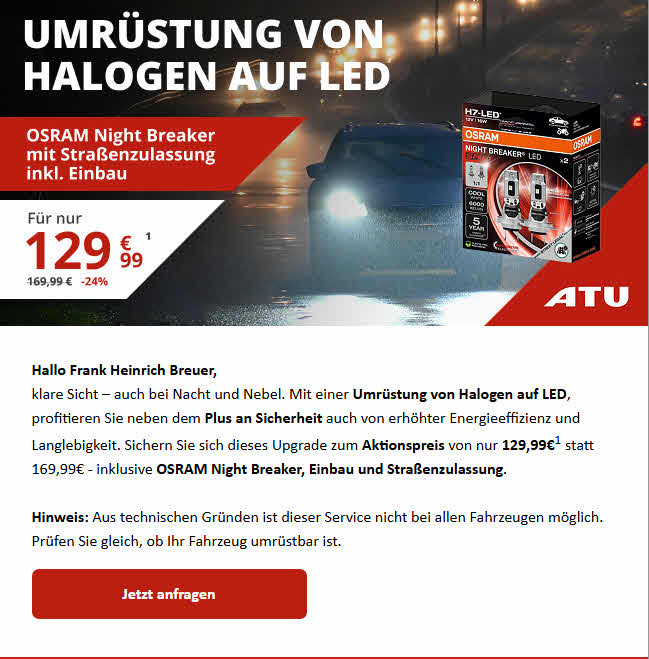 Umrüstung von Halogen auf LED, statt € 169,99 |