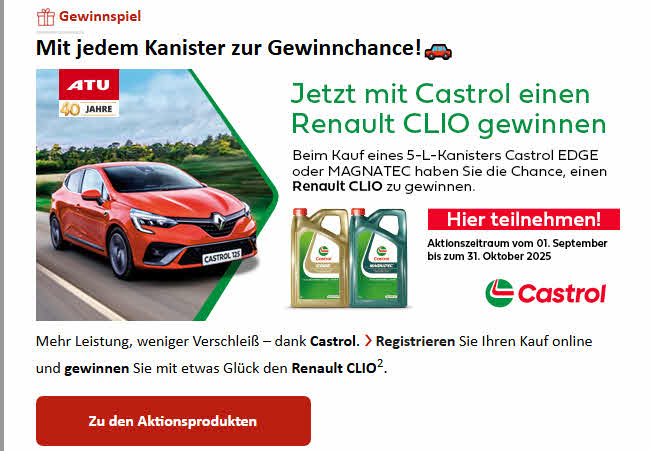 Teilnahme bei Kauf eines 5l-Kanisters Castrol Edge oder Magnatec |