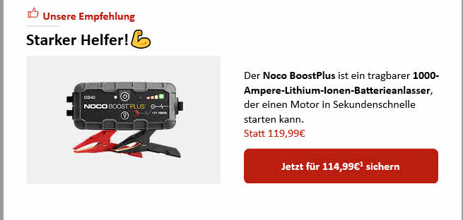Noco BoostPlus Batterieanlasser, statt € 119,99 |