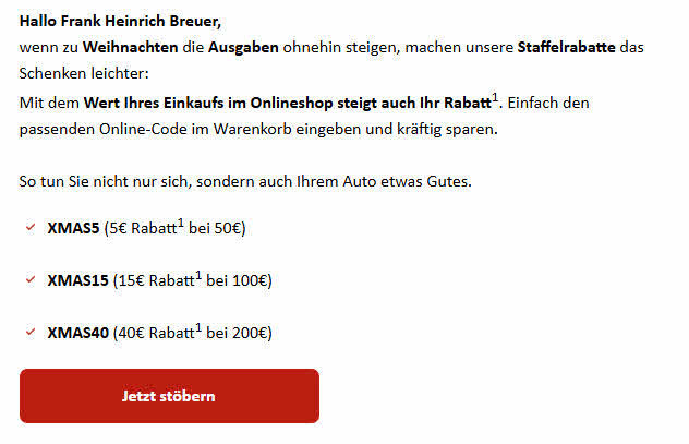 Staffelrabatt im Online Shop: € 5,- bei Bestellwert von mindestens € 50,- |