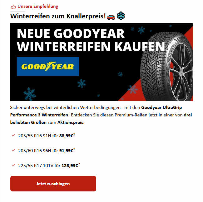 | Goodyear Performance 3 Winterreifen 225/55 R17 |